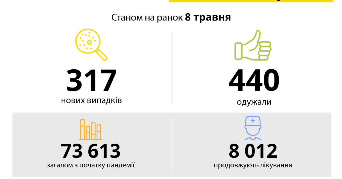 Одужали 63976 (+440) жителів області, продовжують лікування 8012 людей. Усього зареєстровано 1625 летальних випадків, нових – 14 (Полтава – 5, Горішні Плавні – 3; Кременчуцький район – 2; Кременчук; Гадяцький, Полтавський, Хорольський райони). За минулу добу зареєстровано нових випадків – 317.