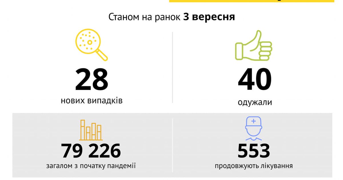 Одужали 76787 (+40) жителів області, продовжують лікування 553 людини. Всього зареєстровано 1886 летальних випадків.