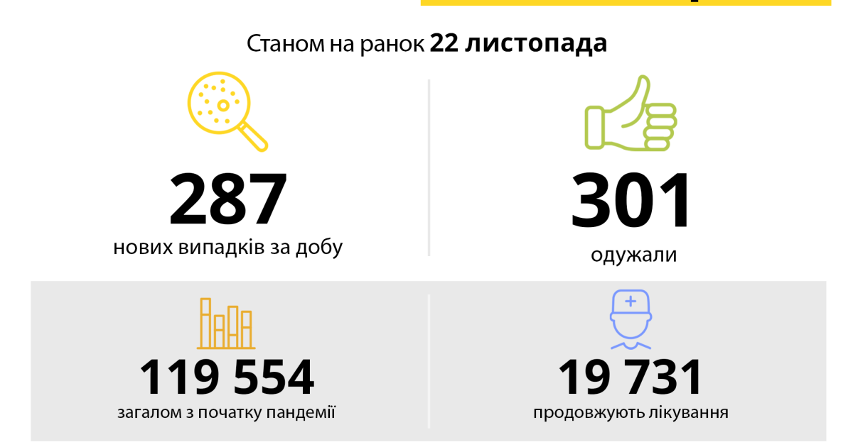 Одужали 96 863 жителі області (+301). Продовжують лікування 19 731 особа.