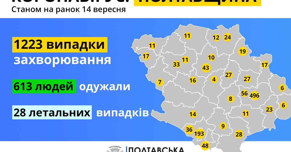 Полтава – 496 (10 нових випадків),