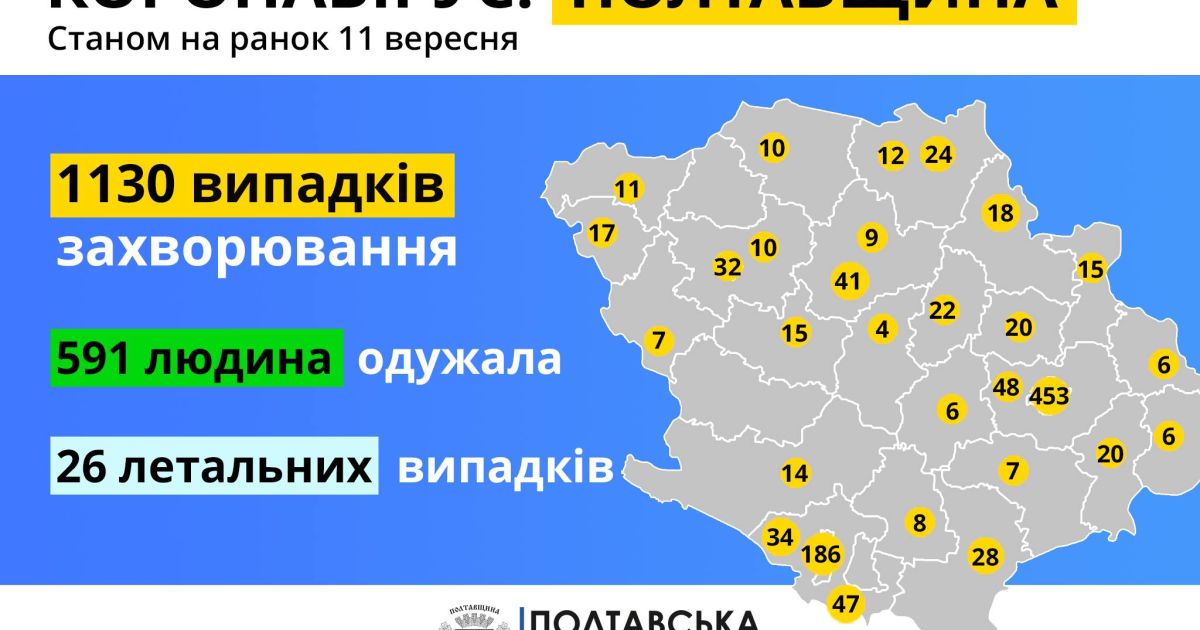 Загалом від початку карантину в Полтавській області діагностували 1130 випадків захворювання на COVID-19.