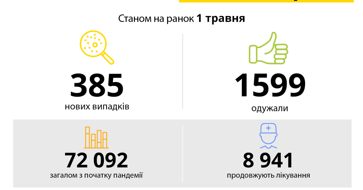 За минулу добу зареєстровано нових випадків – 385.