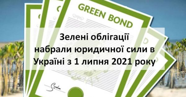Відсьогодні, 1 липня 2021 року, вступає в силу Закон України «Про ринки капіталу та організовані товарні ринки» у редакції Закону України «Про внесення змін до деяких законодавчих актів України щодо спрощення залучення інвестицій та запровадження нових фінансових інструментів» №738-IX від 19.06.2020. Законом запроваджуються зелені облігації як окремий підвид цінних паперів та встановлюються правила для учасників відповідного ринку.