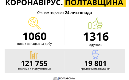 За інформацією Полтавського обласного центру контролю і профілактики хвороб МОЗ України, від початку карантину на Полтавщині діагностовано 122 722 випадки захворювання на COVID-19.