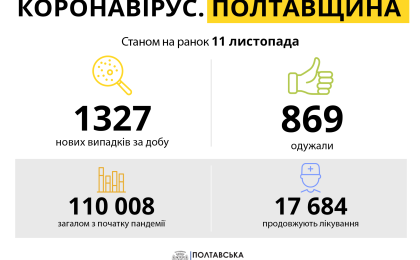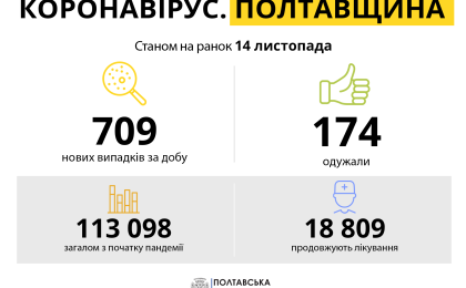 За інформацією Полтавського обласного центру контролю і профілактики хвороб МОЗ України, від початку карантину на Полтавщині діагностовано 113 657 випадків захворювання на COVID-19.