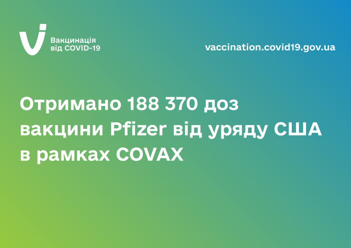 Україна отримала ще 188 370 доз вакцини Comirnaty від Pfizer-BioNTech.