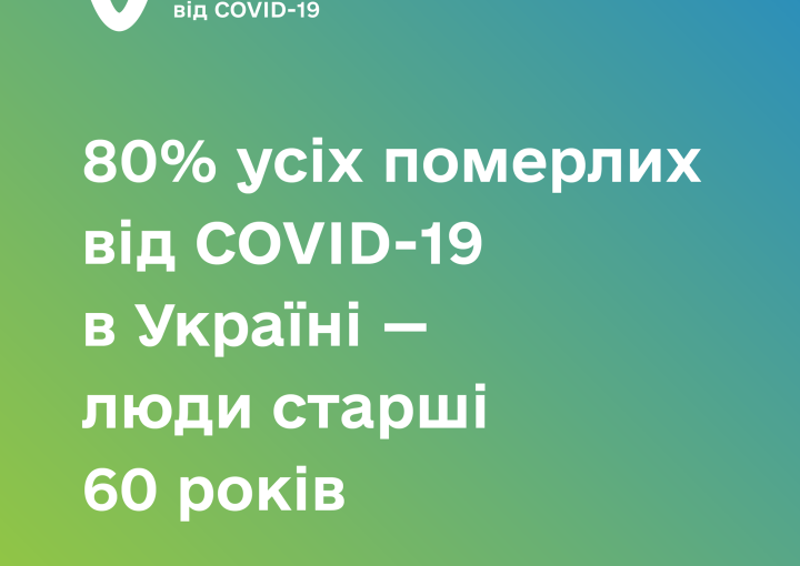 Понад 80% усіх померлих від COVID-19 в Україні – це люди старші 60 років. Так, станом на 14 серпня 2021 від коронавірусної хвороби померло 53 255 осіб, з них 43 566 у віці 60+.