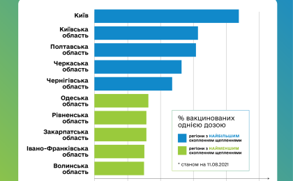 За даними МОЗ, Полтавська область залишається одним із лідерів щеплення проти коронавірусу в Україні. За охопленням вакцинації населення наш регіон – третій після Києва та Київської області.