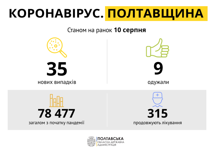 На Полтавщині за минулу добу зареєстровано 35 нових випадків захворювання на COVID-19