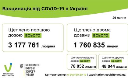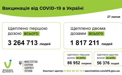 20364 жителів Кременчуцького району отримали щеплення проти COVID-19 за добу 27 липня 2021 року