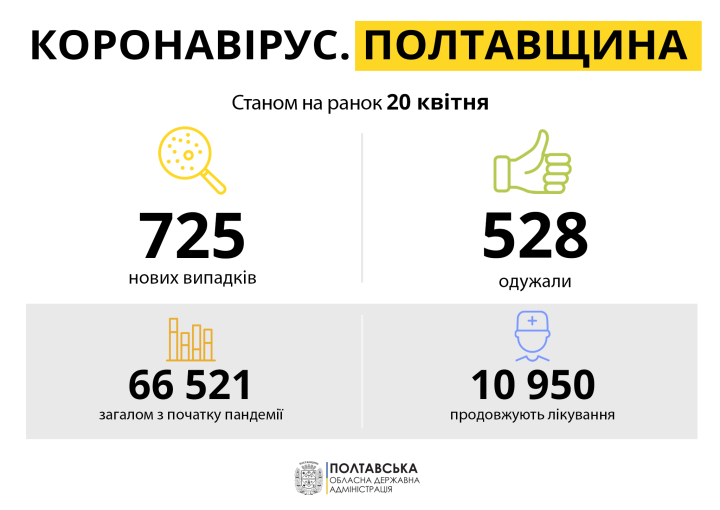 За інформацією Полтавського обласного лабораторного центру МОЗ України, від початку карантину на Полтавщині діагностували 66521 випадок захворювання на COVID-19.