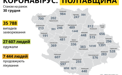 За інформацією Полтавського обласного лабораторного центру МОЗ України, від початку карантину на Полтавщині діагностували 36 079 випадків захворювання на COVID-19.