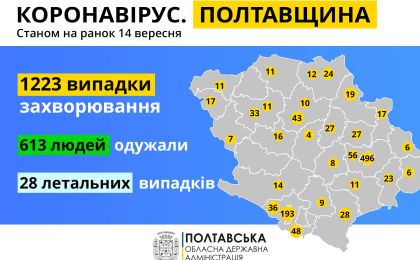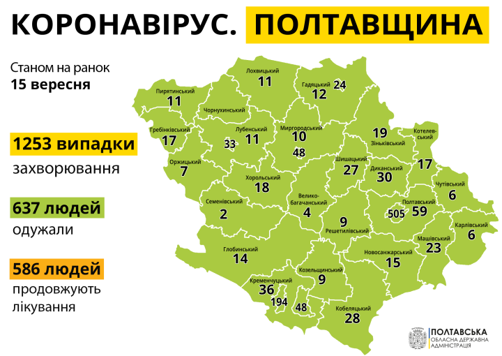 Загалом від початку карантину в Полтавській області діагностували 1253 випадки захворювання на COVID-19.